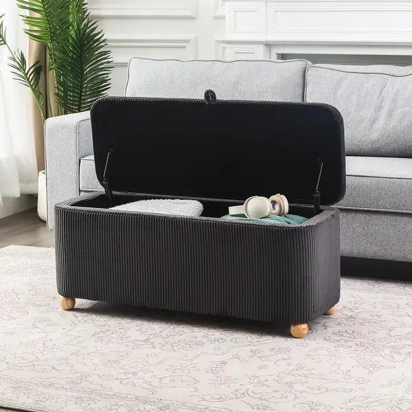 This bench is constructed of velvet, soft fillings, wood frame and rounded wood feet. It has a large storage space for storing clothes, rugs, pillows, magazines, children’s toys and more. The 2 colors have a different look, and with the original wood-colored round feet, it’s both practical and a good way to decorate your room.